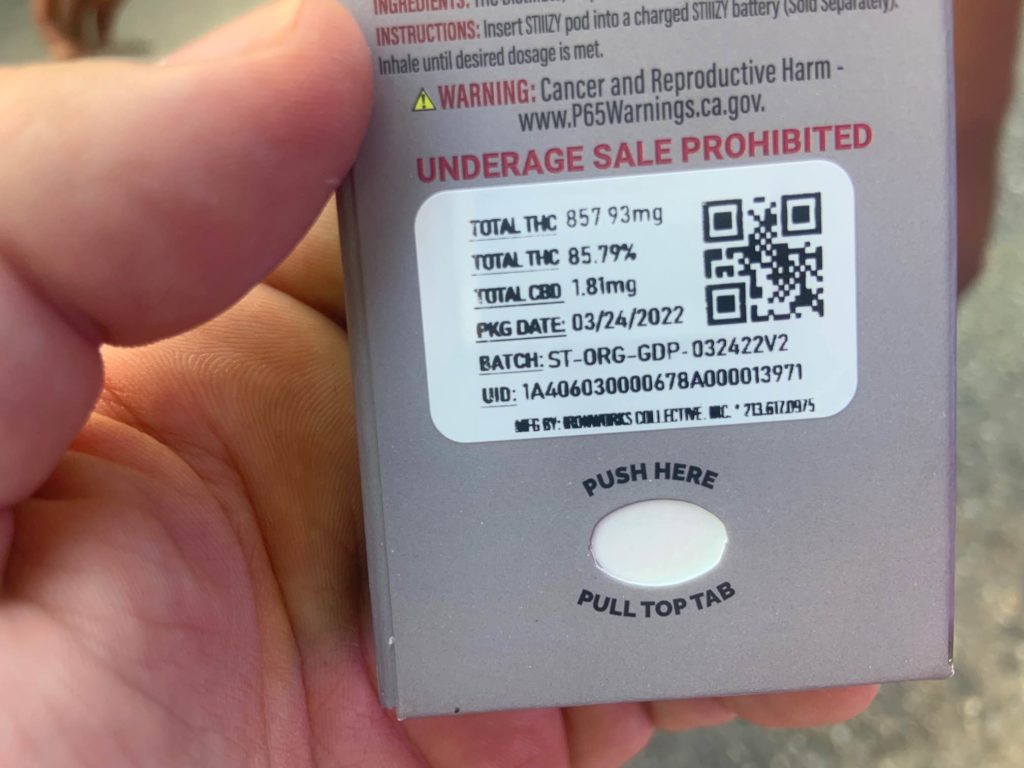 The labels of four Stiiizy-branded vape products purchased in New York City suggest that there is an illegal pipeline of products originating at the company’s licensed Los Angeles factory and reaching out of state markets.