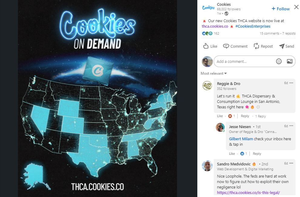 San Diego-based retailer March and Ash sued Cookies and other manufacturers and retailers of intoxicating hemp-derived products, alleging these products violate California law.