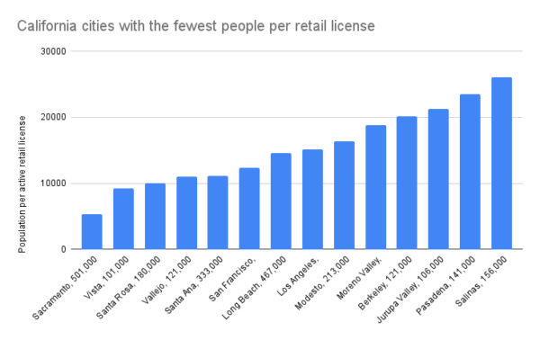 The California industry bemoans the vast tracts of the state where legal weed is inaccessible. But elsewhere in the state, retail is hypercompetitive.