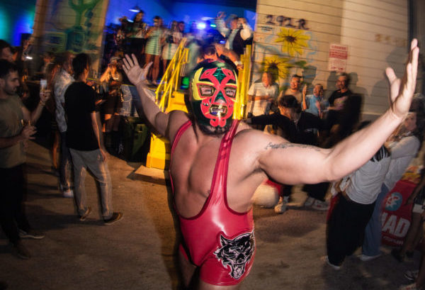 The Star Wars themed party for distributor Herbl, was already bumping when two big guys had a beef and stripped down to their leotards. It was a promotion, of course, for the edibles brand Luchador.