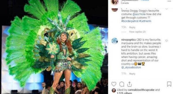 CANADIAN MISS UNIVERSE CONTESTANT DRESSES AS WEED